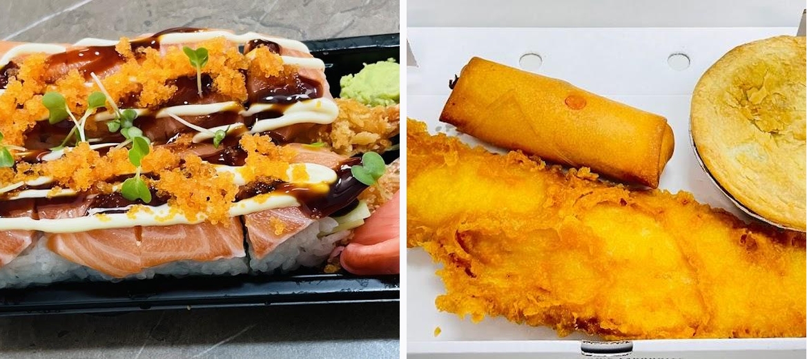 Some customers express skepticism about the combination of sushi offerings in a traditional fish and chip shop, though many admit to being pleasantly surprised by the quality upon trying it.